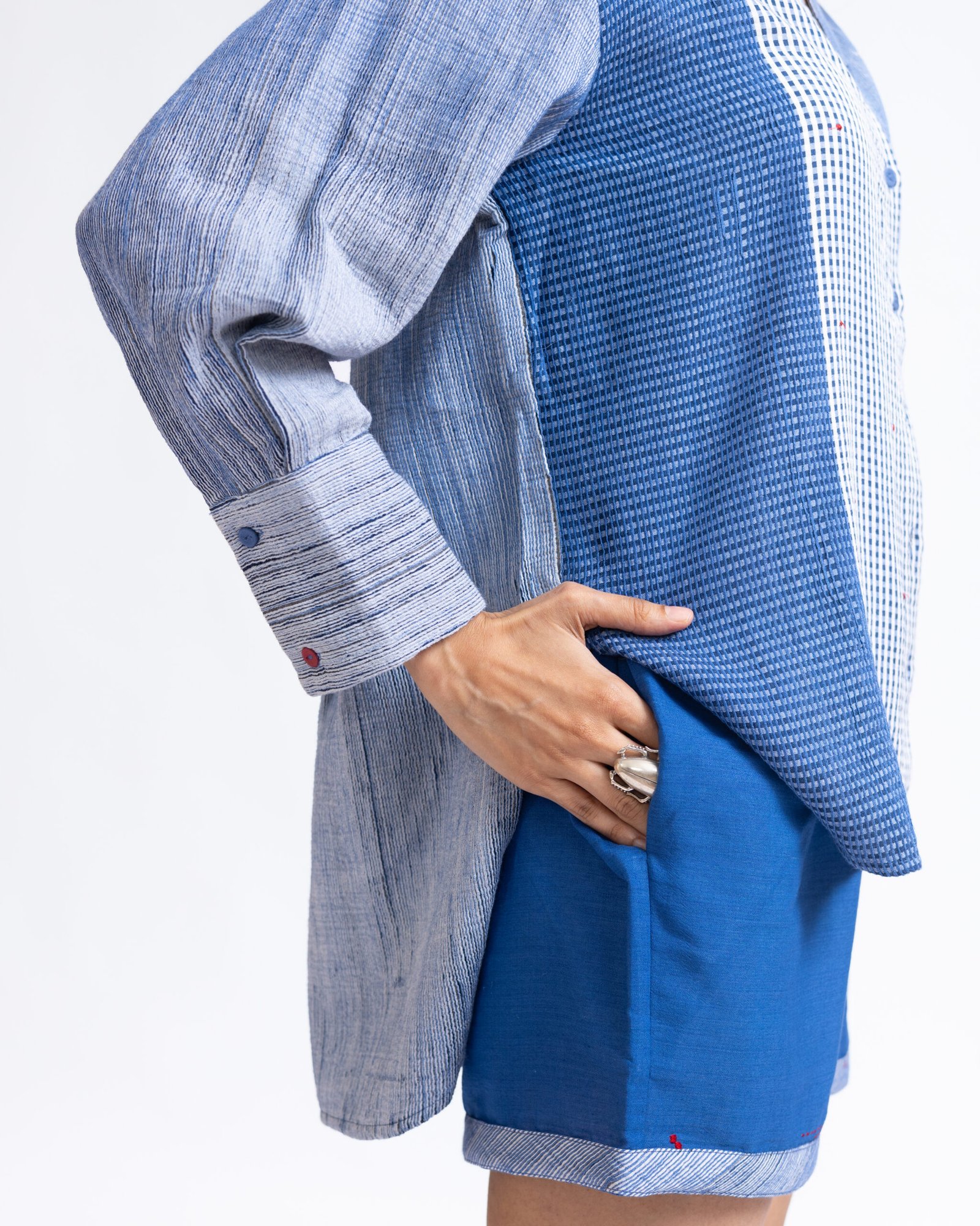 Conscious Craft: Made in handwoven cotton silk and lycra, produced in limited batches, supports artisan-led production and encourages conscious, small-scale manufacturing.
