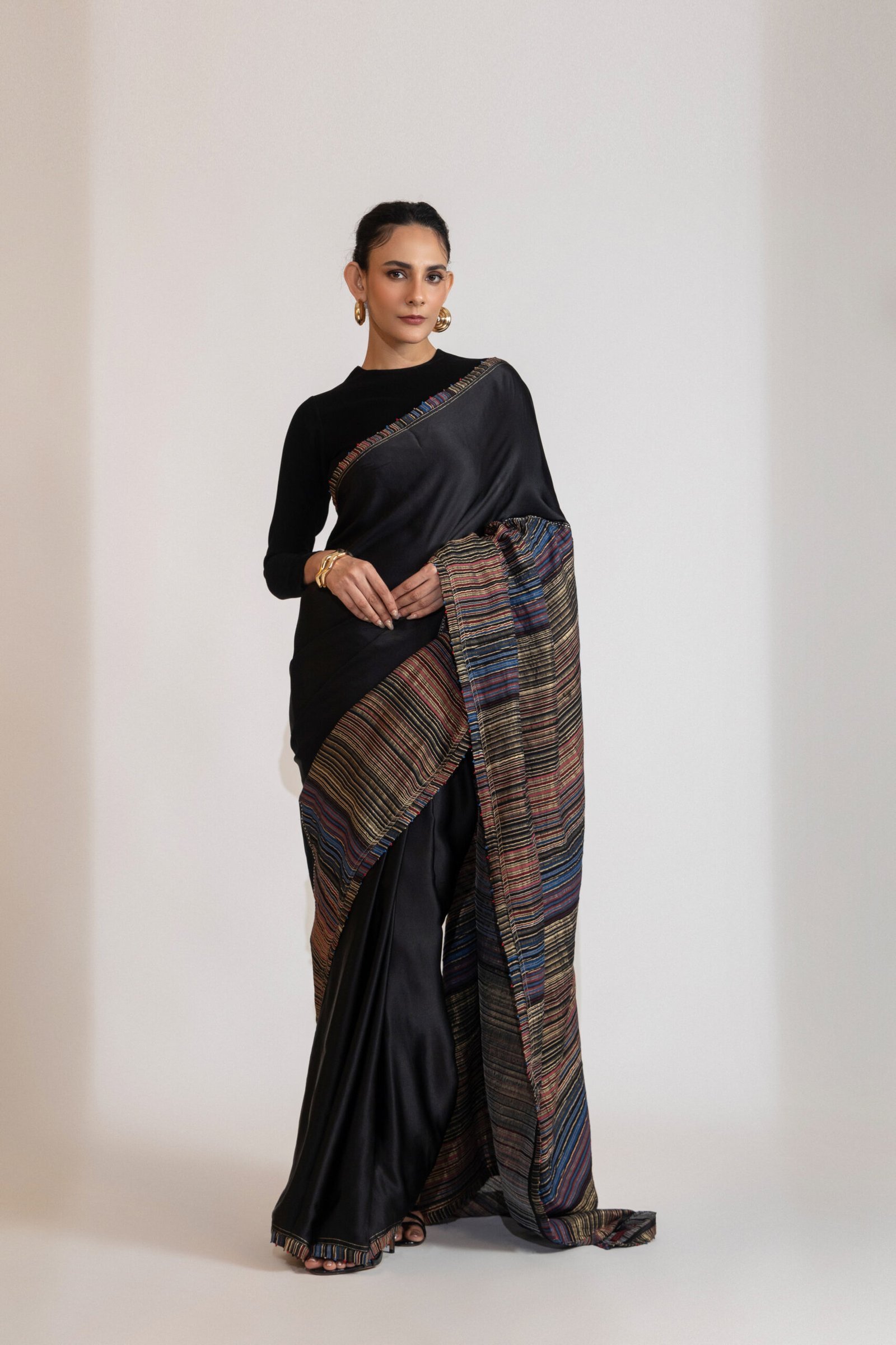 stitch detailing with zari threads that enhance the surface. A narrow border ties the look